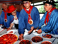 Recipe : Make a pie crust mixing flour, butter, sugar, 1/2 teaspoon salt and 1/2 glass of water. Mix well until pastry makes a ball. Let it rest for 1/2 hour. Peel and seed apples. Cut them in quarters, sprinkle them with sugar. Butter a lot the pie pan and sprinkle the bottom with sugar. Put the apples in the pan pressing them softly. Roll the pastry out on about 5 mm thick. Cover apples with pastry so that we don't see fruits anymore. Bake 25 minutes in a hot oven (240 °C). Turn it out at the end of baking, sprinkle with sugar and sprinkle fruits with little cubes of butter. Grill it for 10 minutes to caramelize the tart. Savor warm with whipped cream or vanilla ice cream. |