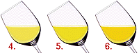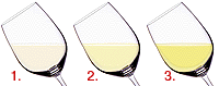 ![]() 1. Clear yellow, white pinot 2. Straw-colored, white sauvignon 3. Golden yellow, young chardonnay |