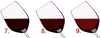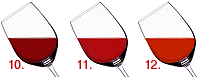 ![]() 7. Purplish red, New season's wines 8. Ruby red, young Médoc 9. Cherry red, 5 years old Chinon |